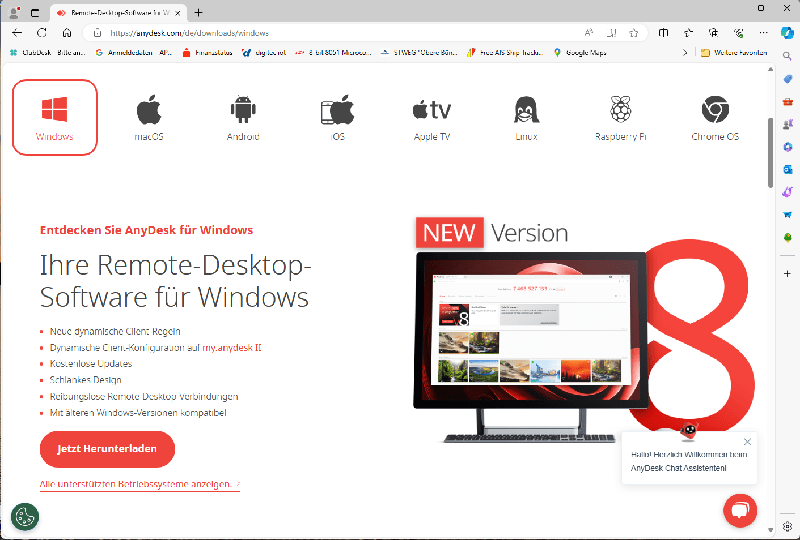 Damit ich über die Fernwartung AnyDesk helfen kann, muss das Programm heruntergeladen werden.
