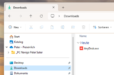 Das Programm wurde auch im Ordner [Download] gespeichert. Durch Doppelklick auf dieses Programm wird AnyDesk ebenfalls gestartet.