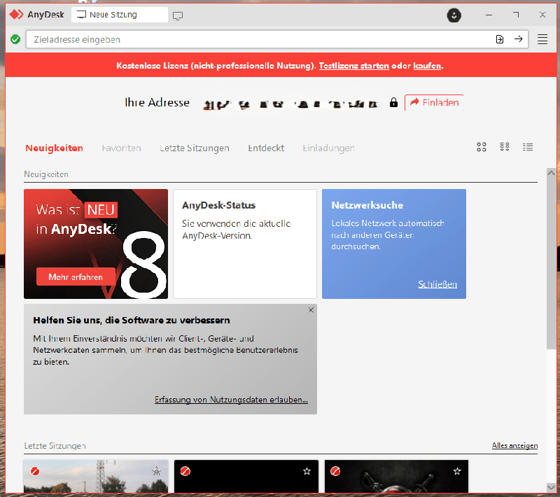 Es erschein die Programm Oberfläche mit Angabe "Ihre Adresse" gefolgt von einer bis zu 9 stelligen Nummer.