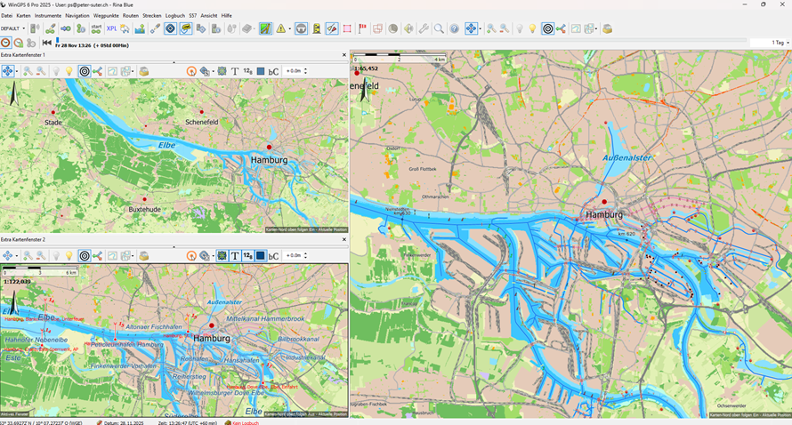 - Aktuelle Wetter- und Strömungsvorhersage dank GRIB-Dateien.
