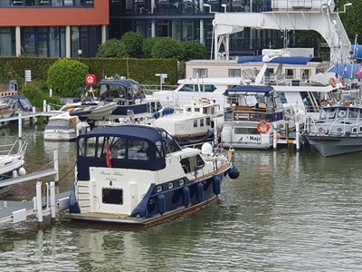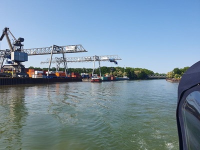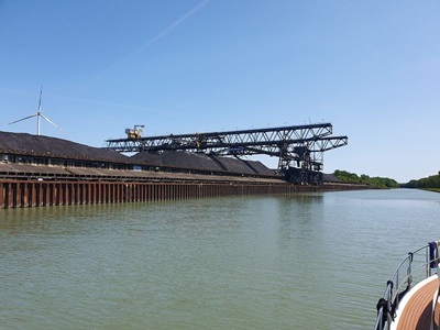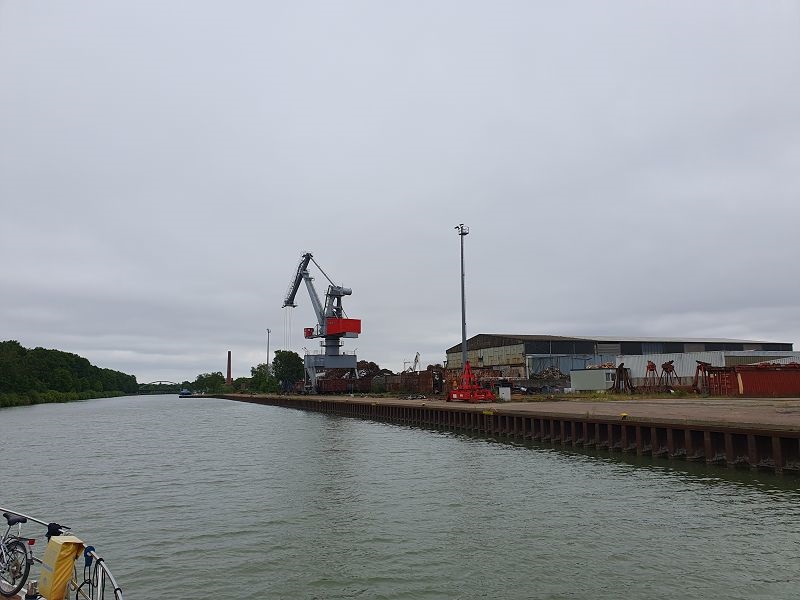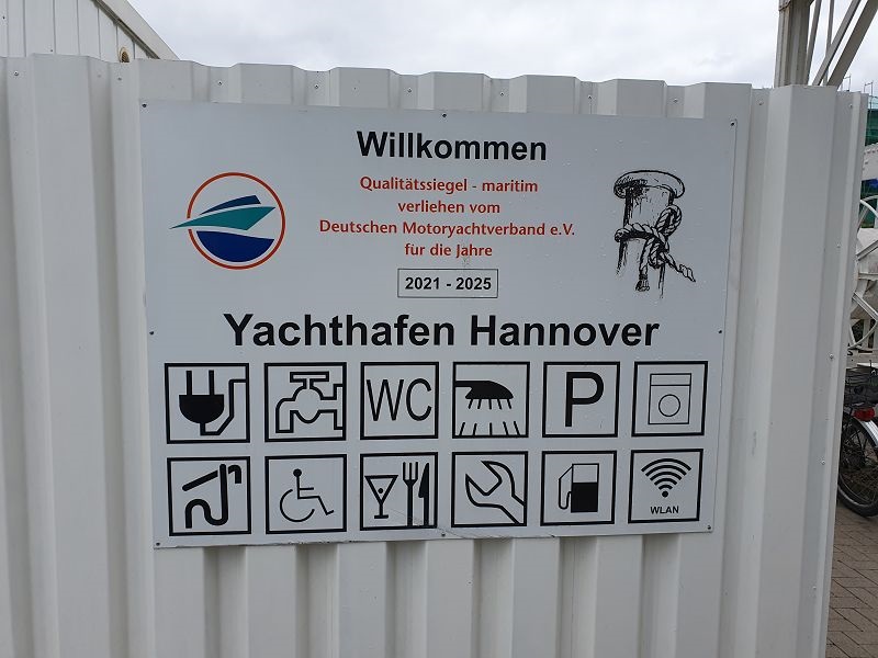 Wir fahren heut zeitig los,. Zuerst müssen wir jedoch vom Liegeplatz ausfädeln, das heißt rückwärts aus der engen Box fahren und dann wenn möglich wenden. Das Manöver klappt gut und so sind wir bereits kurz nach acht Uhr auf dem MLK (Mittel Land Kanal) unterwegs Richtung Osten. Es ist viel los auf dem Wasser. Viele Berufssschiffe kommen uns entgegen. Ein geladenes Schiff legt vor uns ab und bewegt sich in langsamer Fahrt in die gleiche Richtung wie wir. Wir sind mit ca. 11 kmh unterwegs und können dem Frachter gerade noch so entkommen. Hinterher fahren wäre nicht so lustig. Heute haben wir keine Schleuse zu durchfahren, womit wir das Tempo selber bestimmen können. Bereits um 14.00 Uhr erreichen wir den Hafen von Hannover, wo wir einen Platz für die nächsten beiden Tage reserviert haben. Zuerst wird aber noch Treibstoff gebunkert, dann legen wir am zugeteilten Platz an.