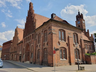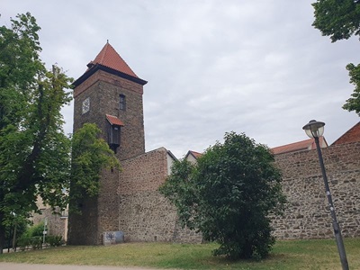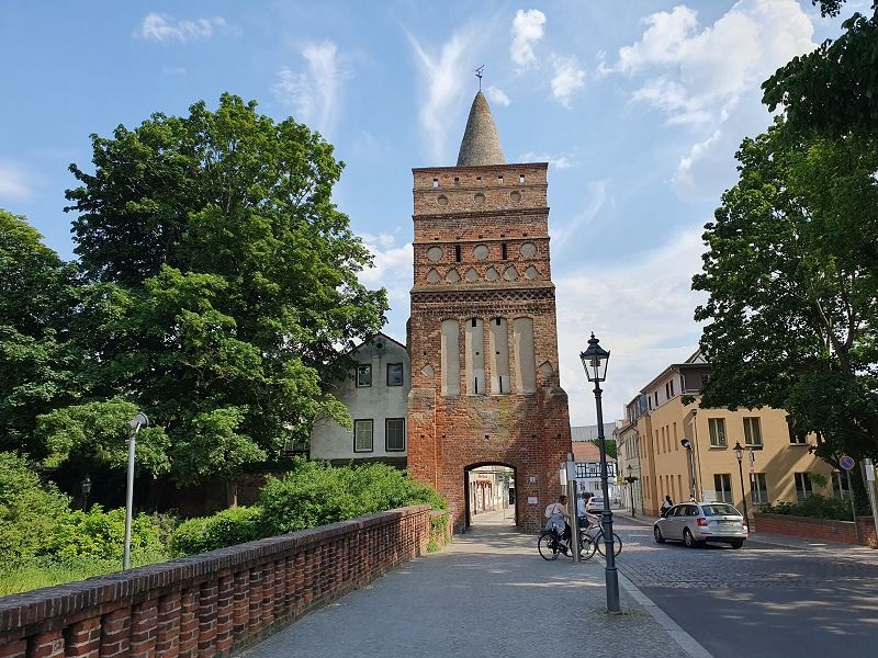 Bereits um sechs Uhr fahren wieder die Frachter an uns vorbei. Heute fahren wir erst gegen neun Uhr ab, es ist ja nur ein kurze Strecke die wir fahren wollen. Ein schiff ist bereits eine Stunde vor uns in Genthin losgefahren. Hier dürfen wir wieder etwas mehr als mit 10 kmh unterwegs sein. Schon bald erreichen wir die Schleuse Wusterwitz, wo wir auch das vorausfahrende Schiff wieder treffen. Wir müssen warten, bis ein Frachtschiff kommt, damit die Sportboote, es haben sich bereits sechs am Wartesteiger eingefunden, geschleust werden. Nach mehr als einer Stunde Wartezeit kommt ein Frachter und alle Sportboote können ebenfalls in die Schleuse fahren. Nach der Ausfahrt wollen die meisten den Frachter überholen, wir fahren aber im selben Tempo wie dieser weiter. Bei der Schleuse Brandenburg können wir direkt mit dem Frachter schleusen und müssen nicht warten. Im Yachthafen Marin legen wir an, besichtigen noch Brandenburg mit einer Velotour und bleiben für die Nacht hier.