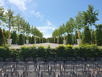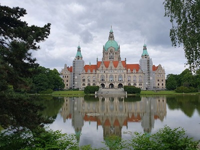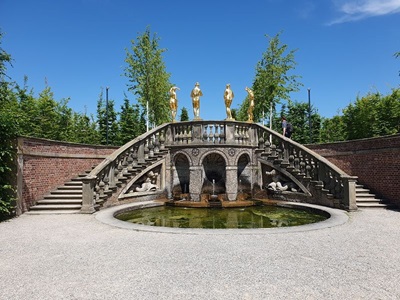 Heute bleiben wir noch hier in Hannover. Am Morgen werden die Lebensmittel ergänzt, so dass wir für die nächsten Tagen alles vorrätig haben. Nach dem Mittag radeln wir zu den Herrenhäuser Gärten. Dies soll eine große Gartenanlage mit Brunnen und Wasserspielen sein. Wir brauchen etwa 20 Minuten mit den Velos bis dort hin. Die Anlage ist tatsächlich riesig. Die Wasserspiele sind aber nicht in Betrieb und auch die Gärten sind meist ohne Blumen, aber mit viel Grün vorhanden.