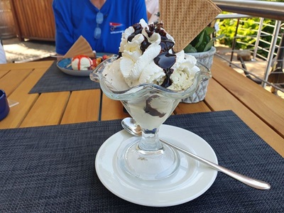 Am späteren Nachmittag radeln wir zurück zur Rina Blue und machen alles für die Weiterfahrt morgen klar.