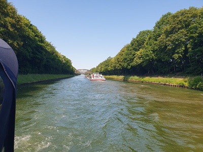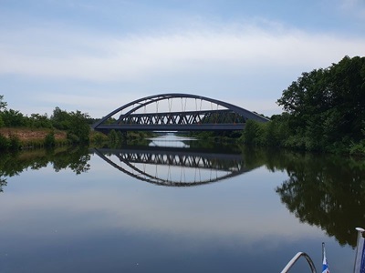 Ein sonniger Tag erwartet uns heute. In der Nacht war es sehr kühl, so dass wir uns freuen auf dem sonnen gewärmten Achterdeck das Frühstück zu genießen. Gegen neun Uhr legen wir ab und fahren auf dem MLK weiter zu Berg. Heute erwartet uns eine Schleuse, die es aber in sich hat. Die Schleuse Anderten hat eine Höhe von 14.7 Meter. Nach kurzer Wartezeit können wir zusammen mit einem holländischen Sportboot einfahren. In schnellem Tempo geht es nach oben, so dass wir wie bei letzten Mal in dieser Schleuse, mühe hatten, das Schiff zu halten. In gemütlicher fahrt geht es weiter auf dem Kanal, der mit unzähligen Brücken für Fußgänger und Autos bestückt ist. Kurz nach zwei Uhr erreichen wir den Salzgitter Kanal, wo sich unser Tagesziel befindet. In der Marina Heidanger finden wir einen Liegeplatz und können im Restaurant einen feinen Cup genießen.