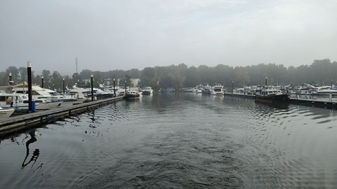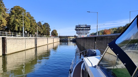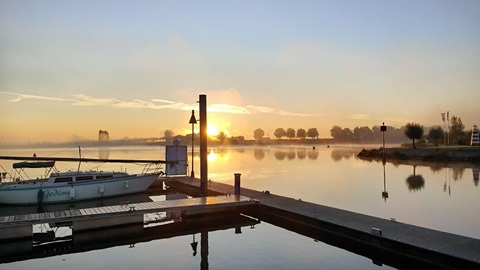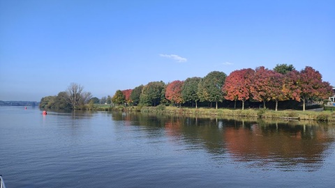 Die letzte Nacht war richtig kalt. Am Morgen schien die Sonne und nur vereinzelt waren Nebelschwaden auszumachen. Doch dann stieg dichter Nebel auf und wir konnten erst gegen 9:00 Uhr losfahren. Zum Wasserbunkern haben wir unsere Rina Blue zum anderen Steg verlegt, da dort der Anschluss sehr nahe ist. Ab heute sind wir wieder allein unterwegs. Das meine ich fast wörtlich, da nur sehr wenige Vergnüngungsschiffe das super Wetter nochmal für eine Ausfahrt nutzen. Wir haben zwei Schleusen zu befahren, Wovon die Erste uns sofort 10 Meter nach unten beförderte. Bei der Schleuse Belfeld stockte es aber und er Schleusenwärter hat die für uns bereitgemachte Schleuse ohne grün Phase wieder geschlossen. Nach einem Aufruf per Funk öffnete die Schleuse wieder und sehr langsam ging es 3.25 Meter zu Tal. Die Fahrt auf der Mass war sehr schon und wir konnten das schöne Wetter richtig geniessen. Im Passanten Hafen von Venlo haben wir für die Nacht festgemacht.