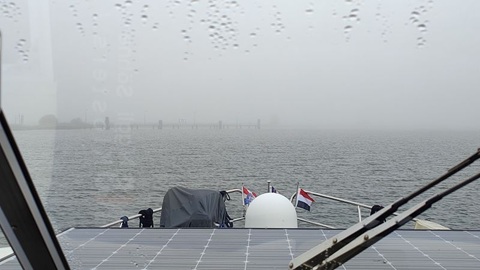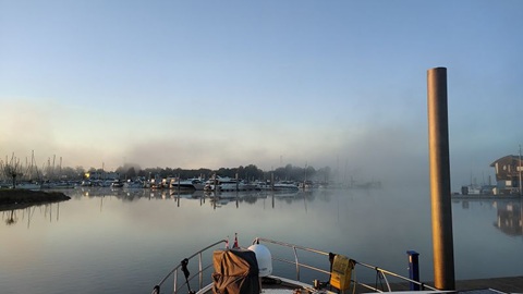 Heute haben wir nur eine kurze Strecke zu fahren. Die Erste Brücke in Lemmer steht noch auf doppelt rot und ein Mechaniker macht sich an der Brücke zu schaffen. Wir hoffen, dass das Problem gelöst werden kann. Um 10:00 Uhr starten wir bei bedecktem Himmel, aber viel wärmere Temperaturen als gestern. Die Brücke funktioniert wieder. Kaum aus der Stadt kommt Nebel auf. Die Sicht beträgt noch zwischen 800 und 600 Meter. Wir fahren also weiter auf dem Prinses Margrietkanaal in Richtung Norden. Vor der Spannenbrug ist der Nebel aber so dicht, dass wir hier einen Halt einlegen. Nach etwa einer halben Stunde fahren wir weiter. Gegen 13:45 erreichen wir Sneek, wo wir im Kanal vor der Oppenhuiserbrug festmachen. Die drei Brücken durch die Stadt sind für drei Tage jeweils bis um 13:00 Uhr wegen arbeiten gesperrt. Weil wir vor der Brücke liegen, können wir morgen losfahren, wann wir wollen.