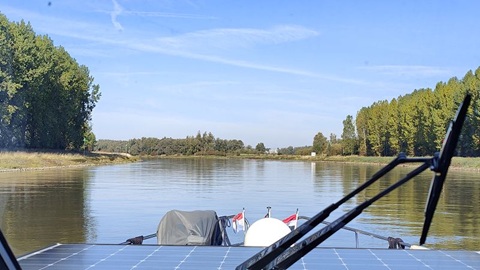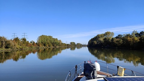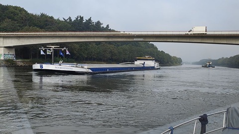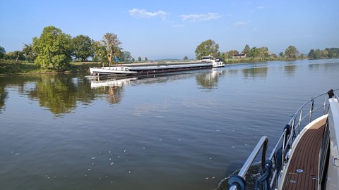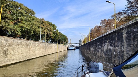 Im Passanten Hafen von Venlo haben alle Leute den sonnigen Tag ausgiebig genossen. Bis in die Nacht war im Restaurant am Hafen Betrieb. Auch heute starten wir zeitig, es hat kein Nebel doch der Himmel ist bedeckt. Auf der Mass ist schon viel los, Schiffe kommen zu Tal und zu Berg. Wir reihen uns hinter einem Frachter ein, können aber trotz dem wir zu Tal fahren nicht einholen. Nach etwa einer Stunde hellt der Himmel auf und scheu scheint die Sonne zwischen den Wolken und dem Hochnebel. Die Bäume am Ufer zeigen uns, es ist wirklich Herbst. Bei der Schleus Sambek, die Einzige heute, müssen wir etwas warten, bevor wir 3.25 Metzer zu Tal befördert werden. Nun sind es noch 20 Kilometer bis zu unserem Tagesziel, der Hafen Eldorado in Plasmolen.