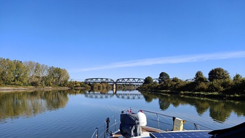 Wir wollten heute zeitig losfahren, aber der Nebel hat uns einen Strich durch die Rechnung gemacht. Kurz vor neun Uhr starten wir den Motor und legen ab. Die Sicht ist gut, fast kein Nebel auszumachen. Doch auf dem "Mookskanaal" hat es Nebel und dieser wird immer dichter. In Mook war die Sicht so schlecht, dass wir wie eine andere Jacht angelegt haben. Ich habe AIS im Schiff, so dass wir von anderen auf dem Plotter gesehen werden. Es wäre aber schlecht gewesen, wenn wir trotz fast null Sicht weitergefahren wären. Eine Stunde später klart es auf und wir legen erneut ab. Über den Waal - Maas Kanal fahren wir hinter einem Frachter nach Nijmegen. Nach der Schleuse geht es auf dem Waal zu Berg. Die Strömung ist, auch wegen dem hohen Wasserstand doch recht happig. Mit 6 - 8 km/h geht es zu Berg bis Millingen und dann in den Pannerdenschkanaal. Am Schluss der heutigen Etappe fahren wir ein Stück auf dem «Neder Rhijn» und machen in Arnhem für die Nacht fest.