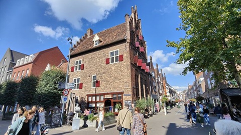 Ein sonniger Tag erwartet uns. Heute starten wir erst um 10:00 Uhr, es hat keinen Nebel. Auf dem Neder Rijn geht es zuerst ein Stück zu Berg, dann können wir auf der Ijssel weiter zu Tal fahren. der Wasserstand ist hoch, so dass auch viele Frachtschiffe die Ijssel benutzen. Auf der Talfahrt erreichen wir eine Geschwindigkeit von 16 km/h. Trotzdem kommt ein Hotelschiff von hinten mit 18 km/h angebraust. Auf der Kurvigen Ijssel ist es nicht überall möglich zu überholen. Das Hotelschiff ist 110 Meter lang und kann nur auf geraden Stücken vorbeifahren. Kurz nach Olburgen informiert mich die Kapitänin des Hotelschiffes, dass sie überholen möchte. Ich mache etwas langsam und die "Reise-Riesen Symphonmie" kann gut vorbeifahren. In Zutphen legt das Schiff an und wir fahren in den Noorderhafen an den Passanten Steiger. Wir machen einen Stadtbummel. Morgen geht es weiter.