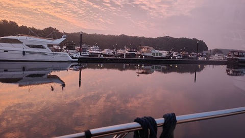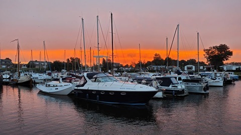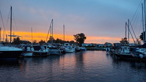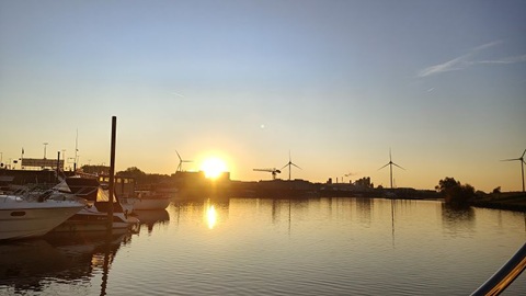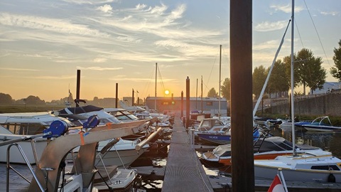Diese Nacht war es nicht so kühl wie in den letzten Nächten. Nach dem Frühstück legen wir ab und fahren auf der Beukelergracht, die Beulakerwijde in Richtung Blokzijl. In Zwartzsluis haben wir für die nächsten Tage den letzten roten Sonnenaufgang gesehen. Es zieht ein Sturmtief heran, dass viel Regen und vor allem starken Wind mitbringen soll. Wir haben in Blokzijl festgemacht und bleiben voraussichtlich die nächsten beiden Tage hier. Wir hoffen, dass der Sturm am Montag vorbei ist und wir weiter in Richtung Winterlager bei RFU in Jirnsum fahren können. In Blokzijl haben wir die Wäsche gewaschen, was mit der super Einrichtung mit zwei Waschmaschinen und einem Tumbler, alles in Profiausführung, speditiv gelaufen ist. Bereits nach drei Stunden waren 4 Waschmaschinenfüllungen fertig gewaschen und getrocknet. So blieb uns am Nachmittag noch Zeit für einen feinen Kaffee mit Kuchen im Prinsenhuis.