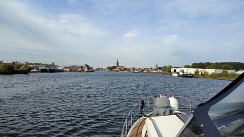 Die Nacht war sehr ruhig im Noorderhaven von Zutphen. Wir starten am Morgen nach dem Frühstück und fahren auf der Ijssel zu Tal. Bei der Ausfahrt aus dem Hafen hat es schon Berg- und Talfahrer, wir bleiben also auf der Steuerbordseite und fahren langsam. Hier ist es günstig überholt zu werden, die Ijssel ist sehr breit. Der Fluss windet sich durch die grüne Landschaft, vorbei an den Städten Deventer, Olst und Wijhe. Es sind auch heute wieder viele Beruf Schiffe unterwegs, die uns von hinten überholen oder entgegenkommen. Auch Vergnügungsschiffe sind einige auf der Ijssel. Trotz Strömung kämpfen sie sich gegen an auf der Bergfahrt. Am Mittag erreichen wir die Schleuse Spoolder, die uns bei Zwolle auf die Zwarte bringt. gegen 15:00 Uhr erreichen wir den Hafen in Zwartsluis, wo wir für die Nacht festmachen. Mit der Crew der Namaste geniessen wir ein feines Nachtessen im Restaurant Zwartewater.