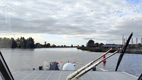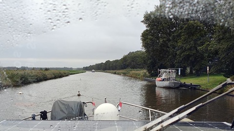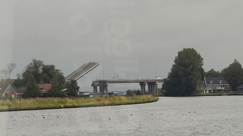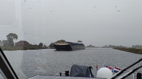 Das schlechte Wetter und der Regen bleiben uns erhalten, der Wind hat zum Glück stark abgenommen. Bereits um acht Uhr legen wir ab. Die Brücken bei Emmeloord haben 1 1/2 Stunden Mittagspause. Deshalb möchten vor diese Punkte vorher passieren. Über den Vollenhoferkanaal erreichen wir die Erste von vier Schleusen heute. Die Voorstersluis, immer etwas langsam, können wir nach einer Pause von 15 Minuten passieren. Auf der Zwolsevaart hat es sehr viele "Inseln" aus Schilf und Algen, so dass wir oft abrupt ausweichen müssen. Auf der Zwollse Vaart läuft es gut, bis zur Kamper Brücke. Erst nach dem ich mit dem Telefon angerufen habe, wird diese Bedient. Die Marknesser Brücke zeigt doppelt Rot. Also nochmals anrufen, aber an der Brücke wird gebaut. Wir können den Geräteträger ablegen und passen gerade so unten durch. Danach läuft es wieder gut und bereit um 13:45 legen wir in Lemmer an.